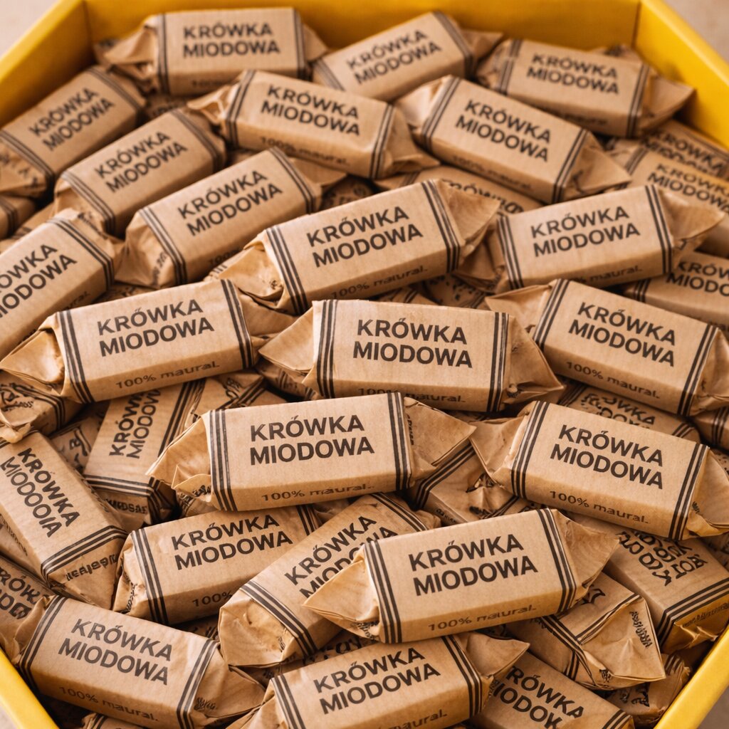 Mięciutkie, tradycyjne krówki o naturalnym miodowym aromacie. Słodkie, rozpływające się w ustach, wykonane na bazie mleka i prawdziwego miodu wielokwiatowego. Idealne do kawy, na prezent i dla miłośników domowych słodkości.
