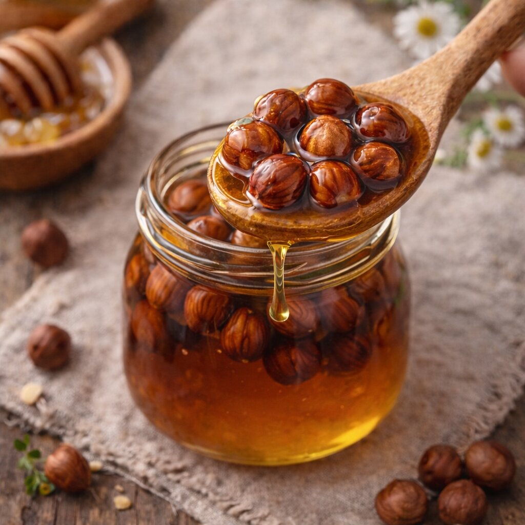 Miód z orzechami laskowymi świetnie sprawdzi się: