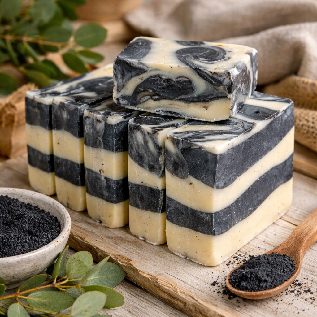 Formuła została wzbogacona o węgiel aktywny i glinkę białą (kaolin) — składniki cenione za właściwości oczyszczające i absorbujące zanieczyszczenia. Dodatek naturalnego miodu wspiera nawilżenie i łagodzenie skóry, a olejek eukaliptusowy nadaje mydłu świeży, ziołowy aromat.