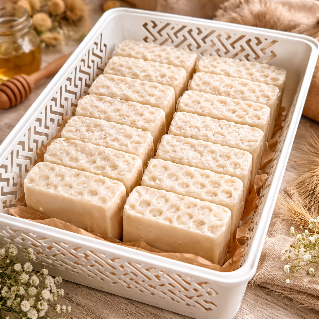 Naturalne mydło z dodatkiem miodu to rzemieślniczy produkt stworzony z myślą o łagodnym, ale skutecznym oczyszczaniu skóry. Receptura oparta jest na bazie olejów roślinnych i masła shea, które wspierają pielęgnację skóry już podczas mycia.