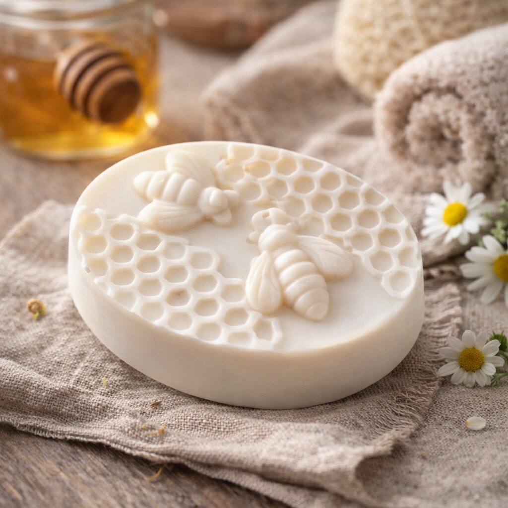 Szczególnym składnikiem jest naturalny miód, ceniony za swoje właściwości nawilżające i łagodzące. To właśnie on sprawia, że mydło jest wyjątkowo delikatne i przyjemne w codziennym użyciu.