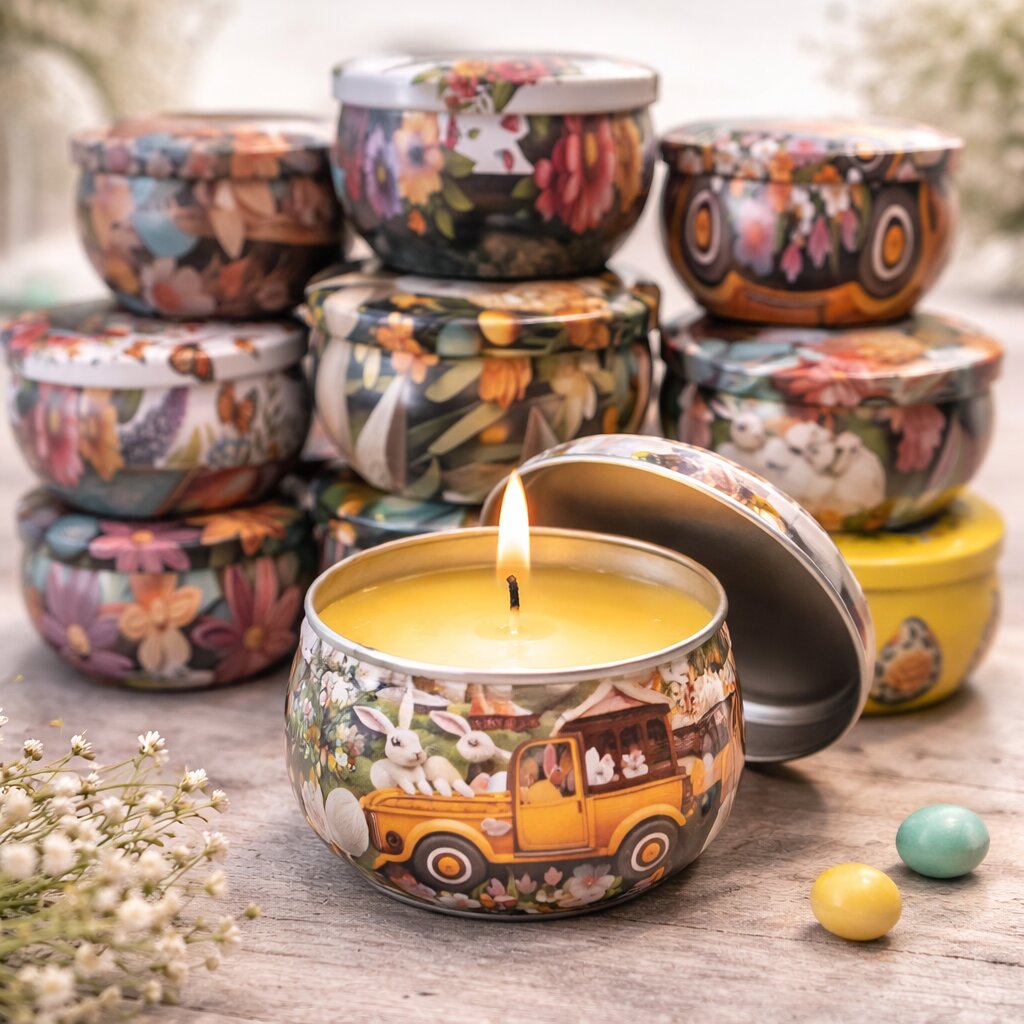 Świeca z wosku pszczelego w wielkanocnej puszce 60g