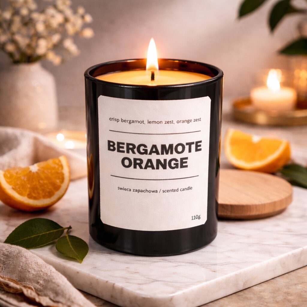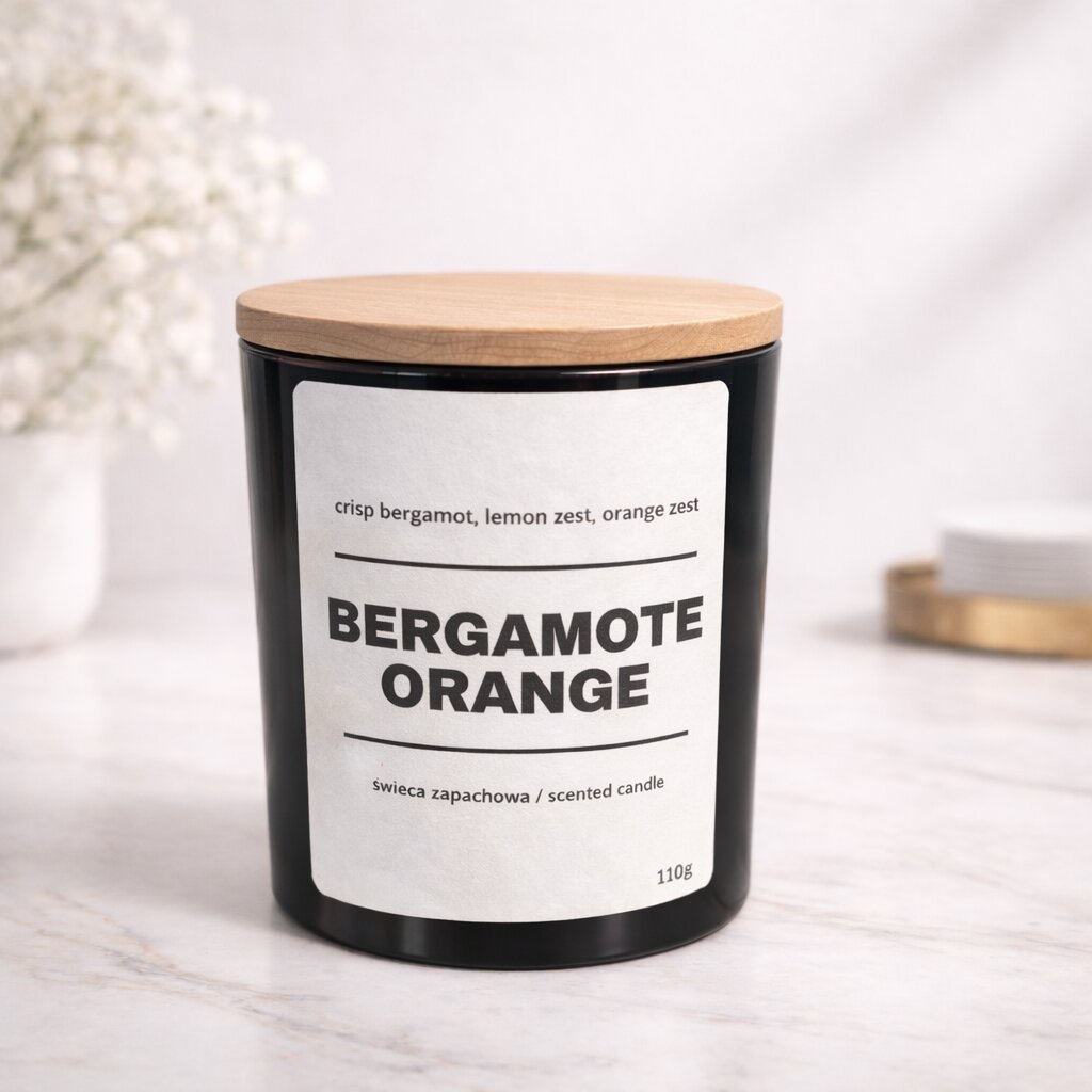 Świeca zapachowa BERGAMOTE JUICY ORANGE 10% 110g – czarne szkło