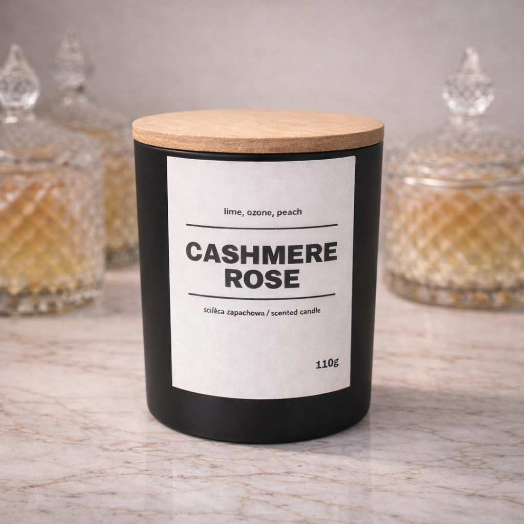 Świeca zapachowa CASHMERE ROSE 10% 110g – czarne szkło