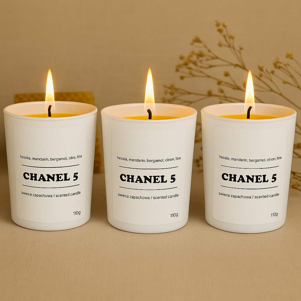 Świeca zapachowa CHANEL 5 10% – białe szkło