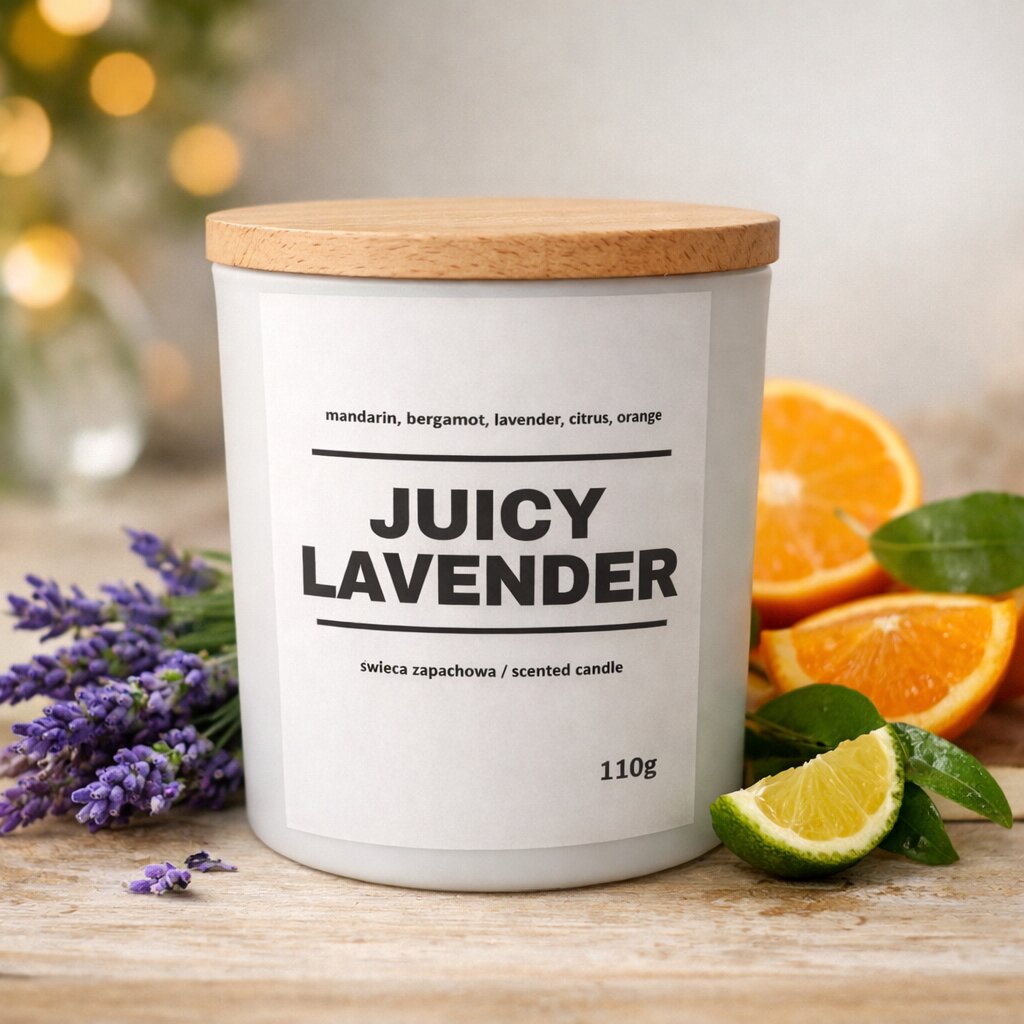 Świeca zapachowa JUICY LAVENDER 10% 110g – białe szkło