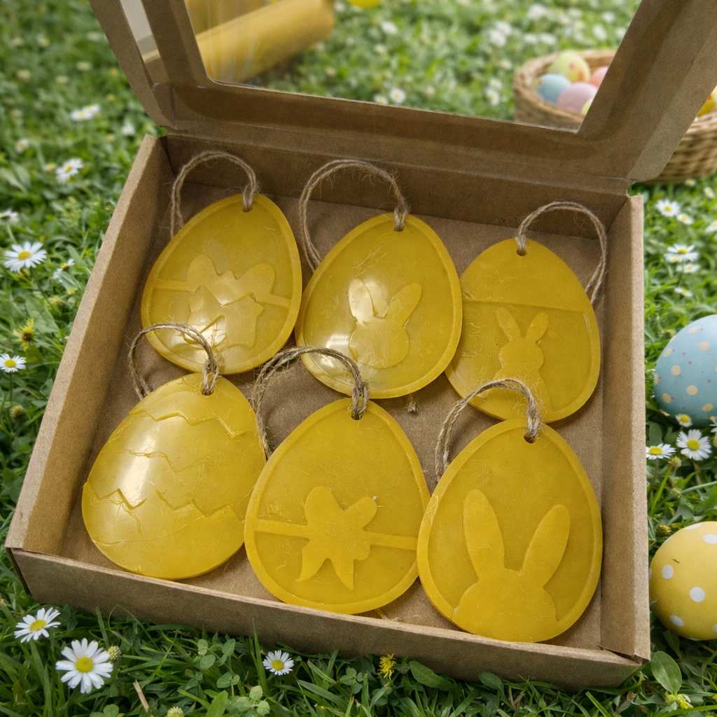 Ręcznie wykonane zawieszki z naturalnego wosku pszczelego to subtelna i elegancka dekoracja do domu. Ich ciepły, miodowo-woskowy aromat jest delikatny i naturalny — nie jest to intensywny zapach perfumowany.